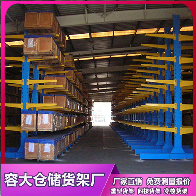 懸臂式貨架適用于存放長物料、環型物料、板材、管材及不規則貨物。懸臂可以是單面或雙面,懸臂式貨架具有結構穩定,載重能力好、空間利用率高等特點。貨物存取由叉車、行車或人工進行。